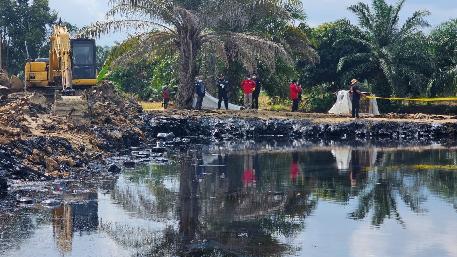 Seorang warga yang enggan disebutkan namanya mengungkapkan bahwa pihak kepolisian dan DLH mendatangi lokasi sekitar pukul 10.00 WIB. “Iya, Bang, itu lokasi yang sempat viral. Kami lihat ada alat berat, mesin pompa, tedmon minyak, dan kolam-kolam yang tampaknya digunakan untuk menampung limbah. Sekarang sudah dipasang garis polisi dan spanduk penyegelan,” ungkapnya.