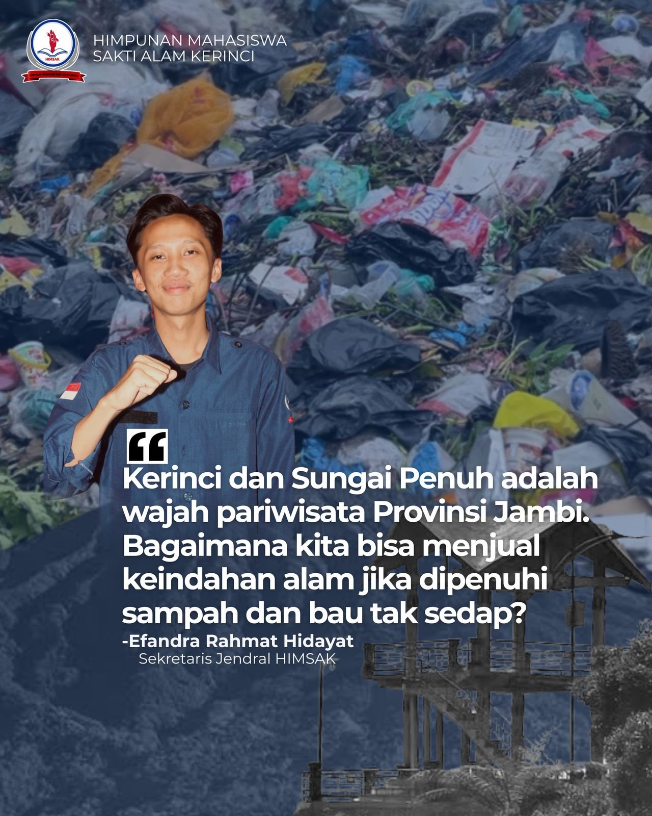 Kerinci, 15 April 2025 – Himpunan Mahasiswa Sakti Alam Kerinci (HIMSAK) kembali menyuarakan keprihatinannya atas krisis penangan sampah yang kian meresahkan masyarakat di Kabupaten Kerinci dan Kota Sungai Penuh.