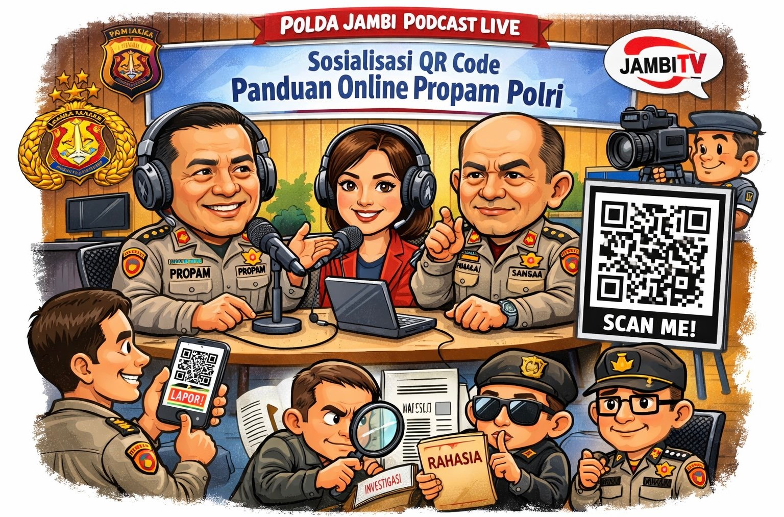 Dalam upaya meningkatkan transparansi serta kemudahan akses layanan pengaduan masyarakat, Bidang Profesi dan Pengamanan (Bidpropam) Polda Jambi menggelar sosialisasi QR Code Panduan Online Propam Polri melalui podcast live streaming, Senin (30/3/2026).