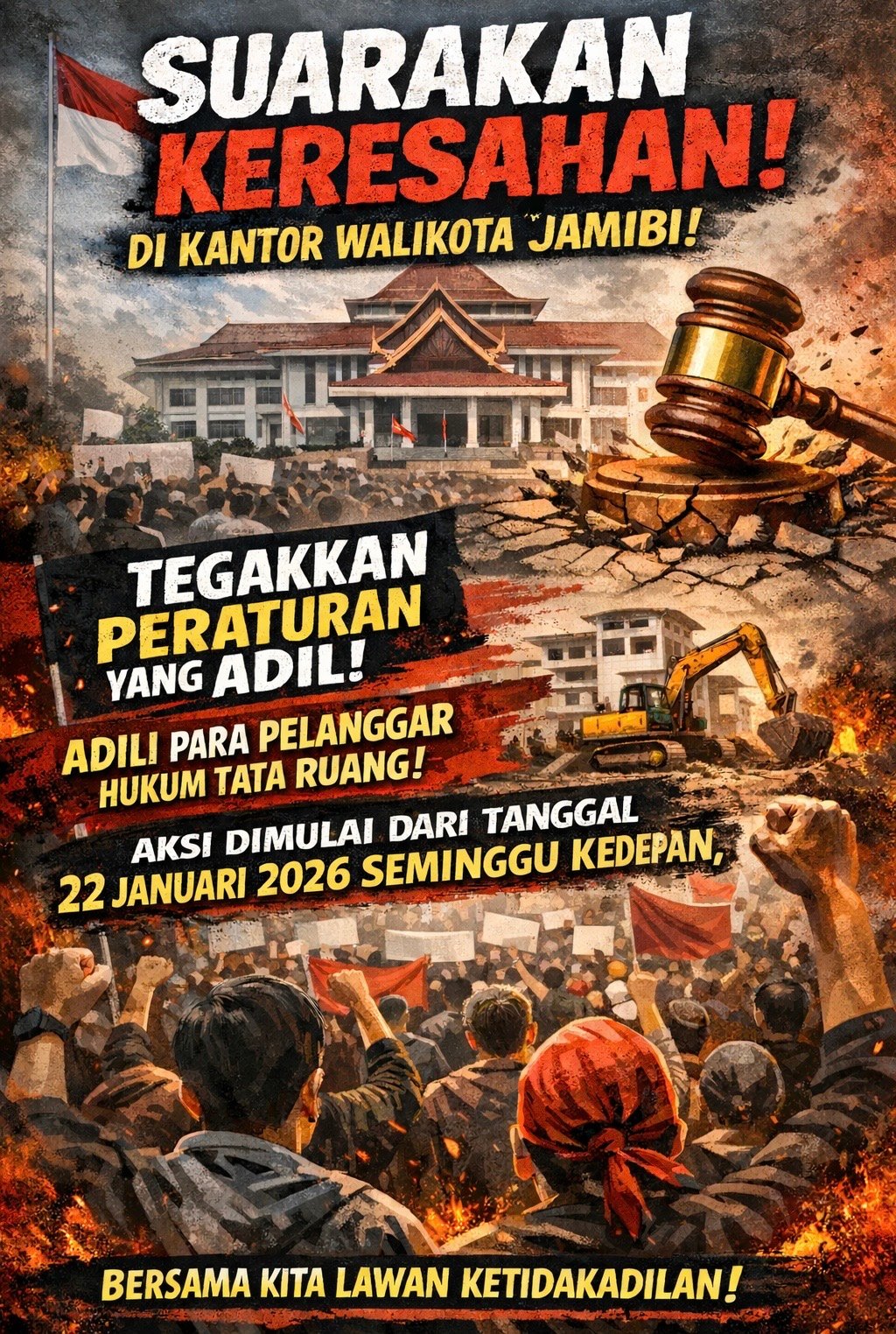 “Ketidakadilan yang dibiarkan hari ini akan menjadi beban bagi generasi mendatang. Kota Jambi tidak boleh dikelola dengan keberpihakan pada kepentingan segelintir pihak,” demikian kutipan pernyataan dalam undangan terbuka tersebut.